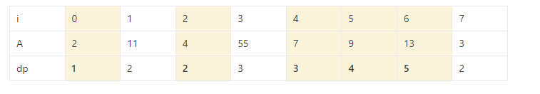 // 이전 원소들 중 가장 큰 dp값 + 1