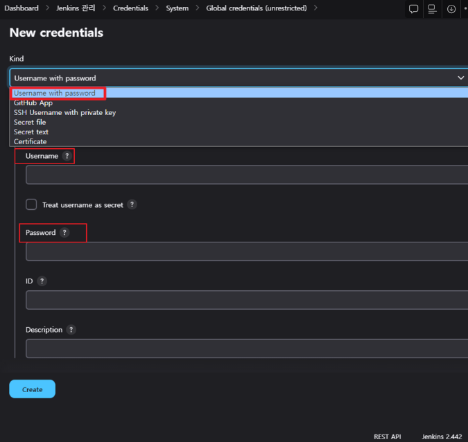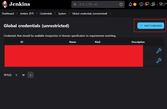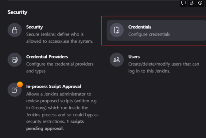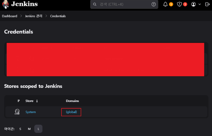 - Jenkins 관리로 들어가 하단의 Credentials 클릭