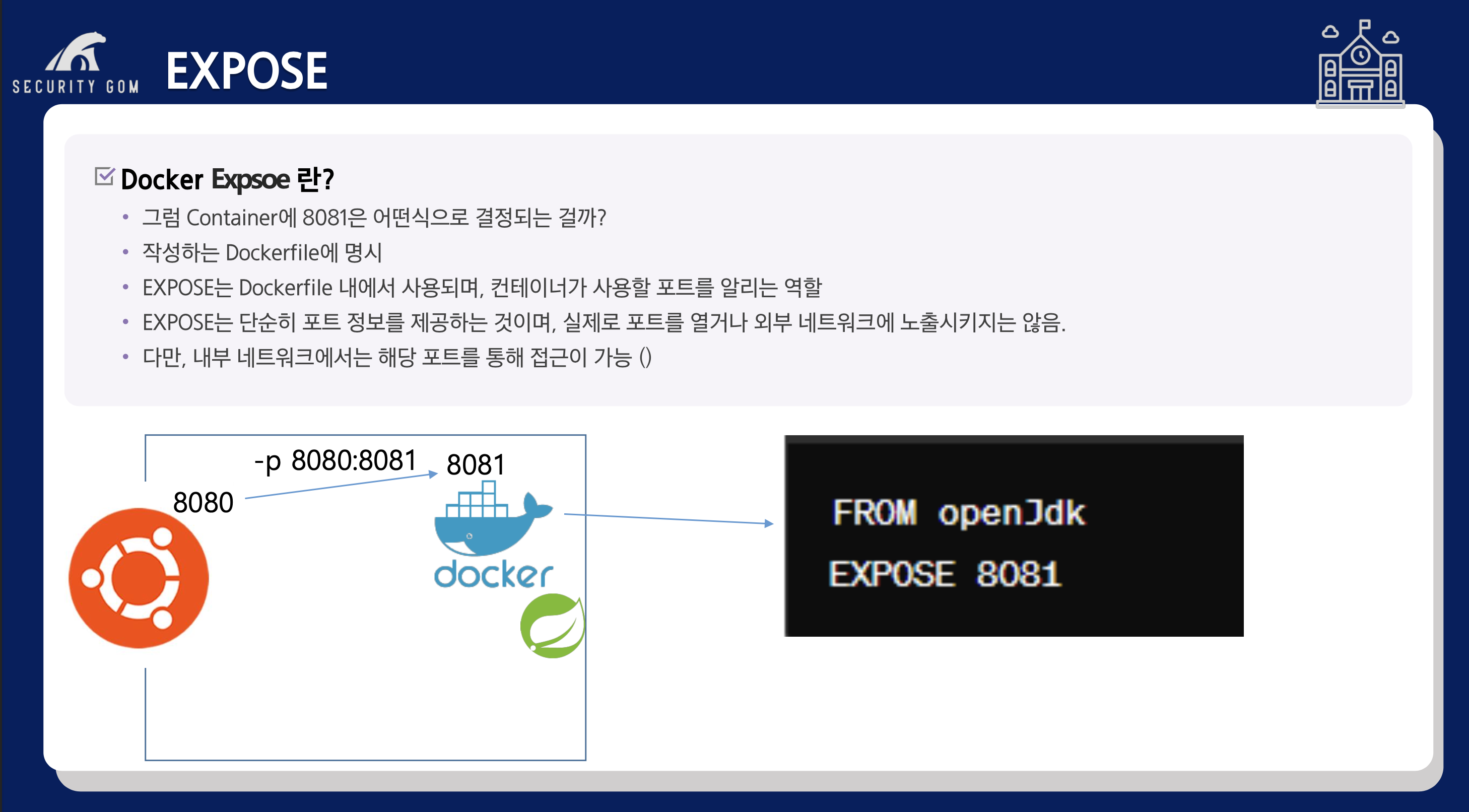 바로 Dockerfile을 실행할 때 EXPOSE를 통해 지정해 주는 것입니다.