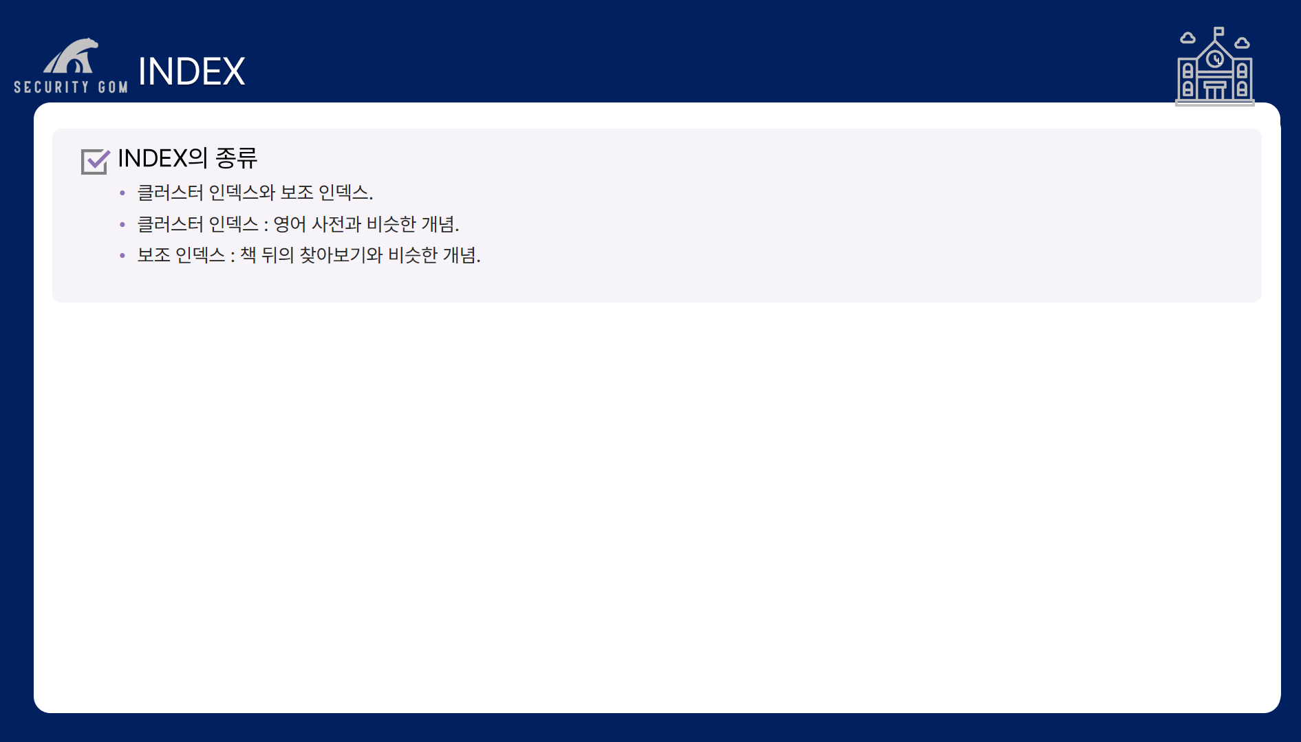 인덱스는 크게 2종류로 나누어집니다.