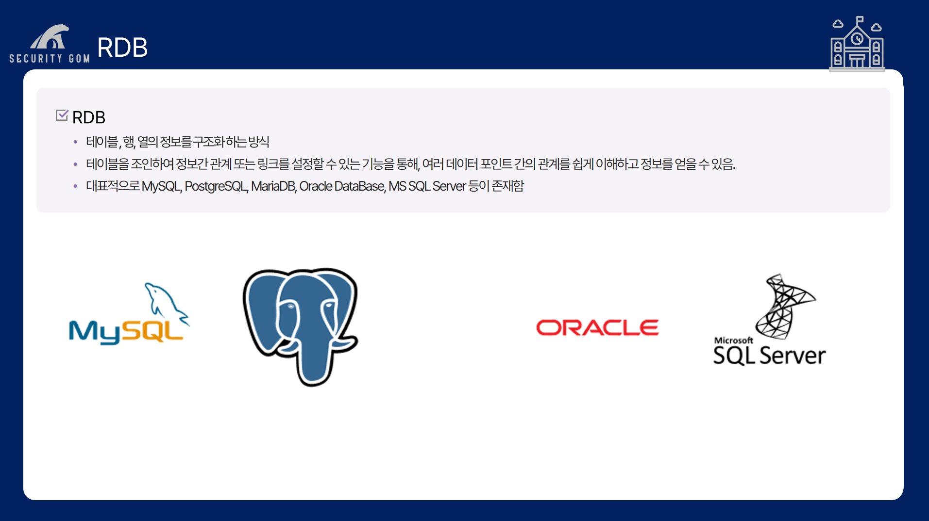 대표적으로 MySQL, Oracle 등이 존재합니다.