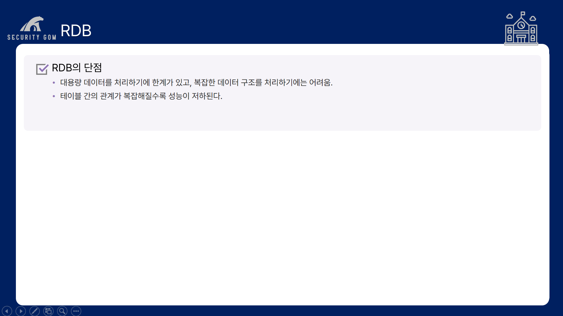 RDB에서도 성능을 최적화할 수 있는 방안이 있고 NoSQL대비 장점을 갖는 부분도 많이 존재합니다.