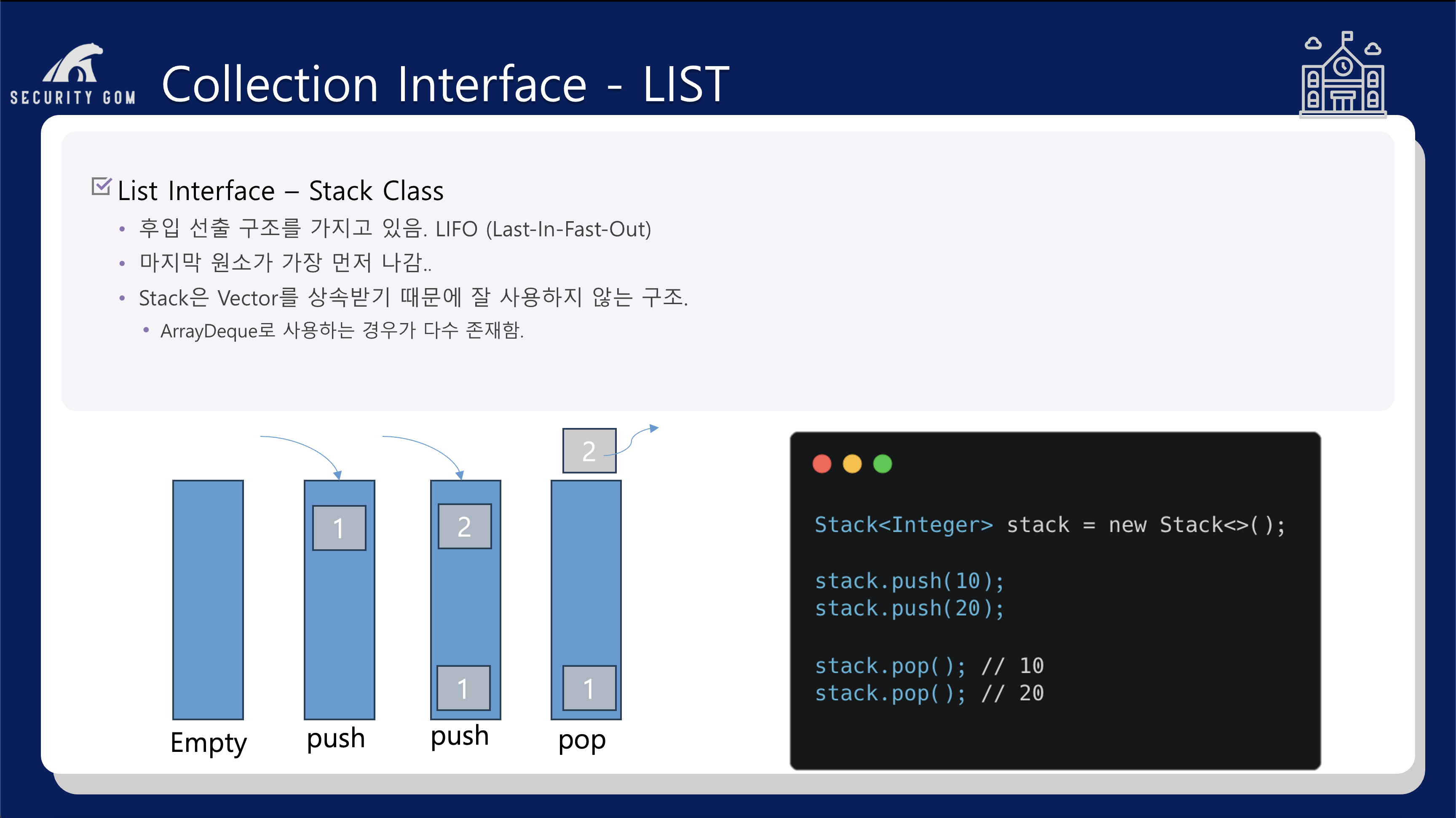 다음 시간에는 Collection Interface를 상속받고 있는 Queue 자료 구조에 대해 알아보도록 하겠습니다.