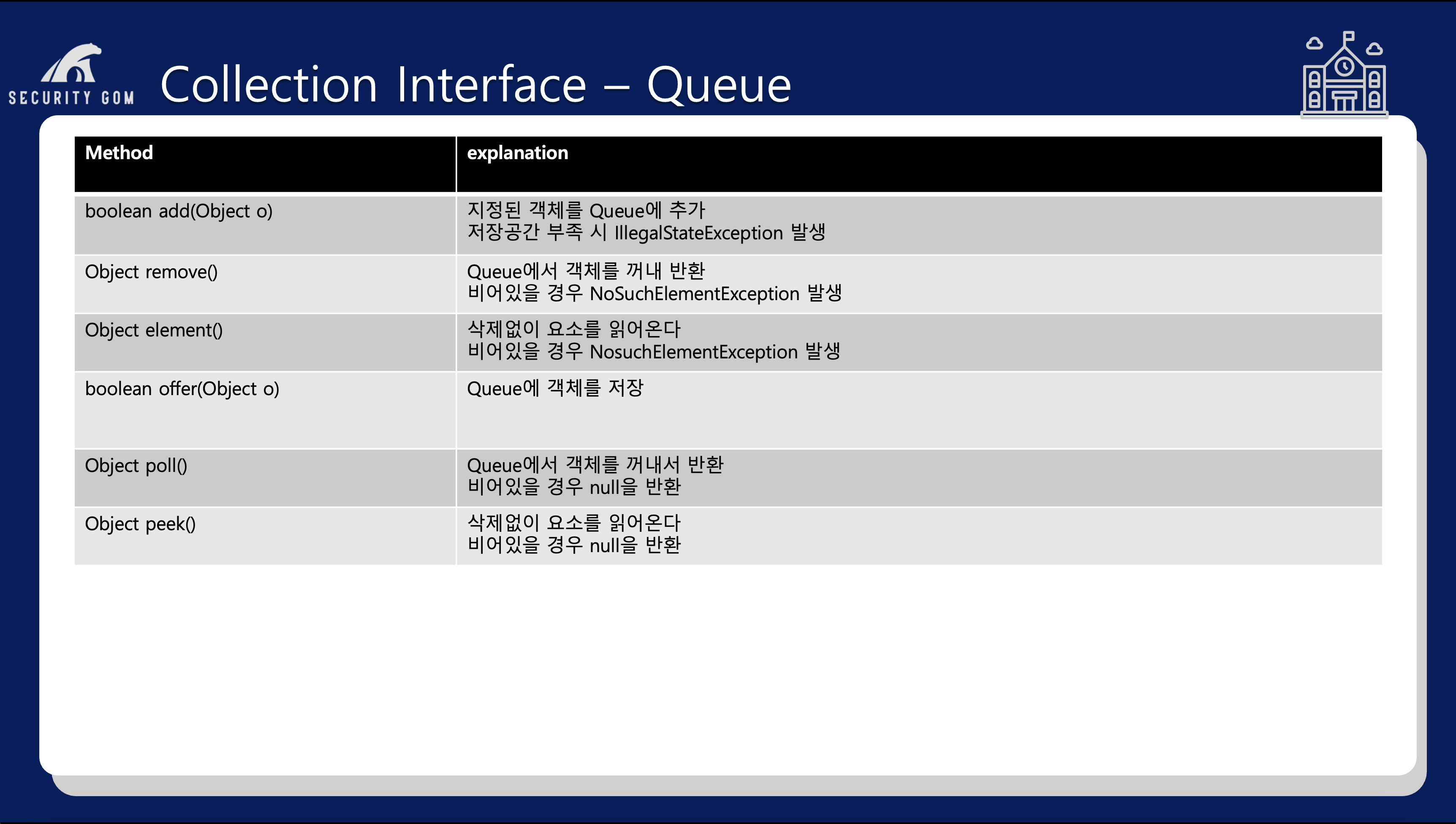 이전 시간에 이어 Collection Interface의 Queue를 배워보도록 하겠습니다.