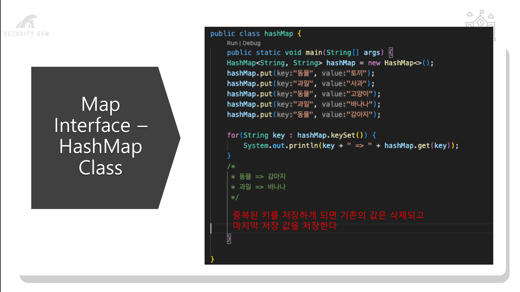 - 중복된 키를 사용하게 되면 기존 값이 삭제 되고 마지막 저장 값을 다시 저장한다.