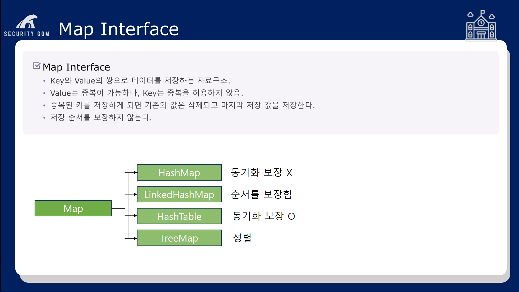 또한, Map Interface 안에는 HashMap, LinkedHashMap, HashTable, TeeMap 등이 존재하는데요.