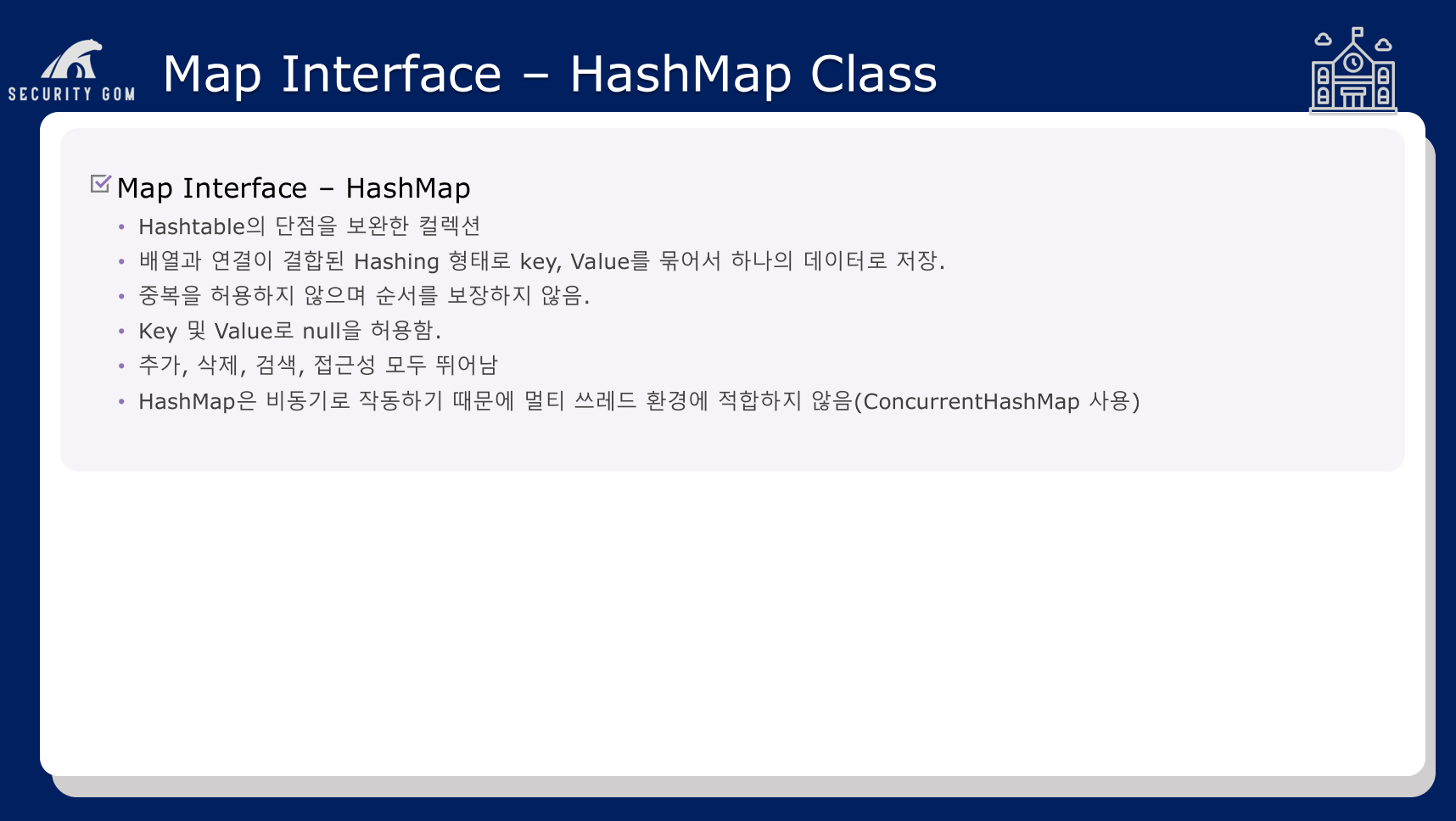 HashMap 은 기존은 HashTable의 단점을 보완한 컬렉션 입니다.